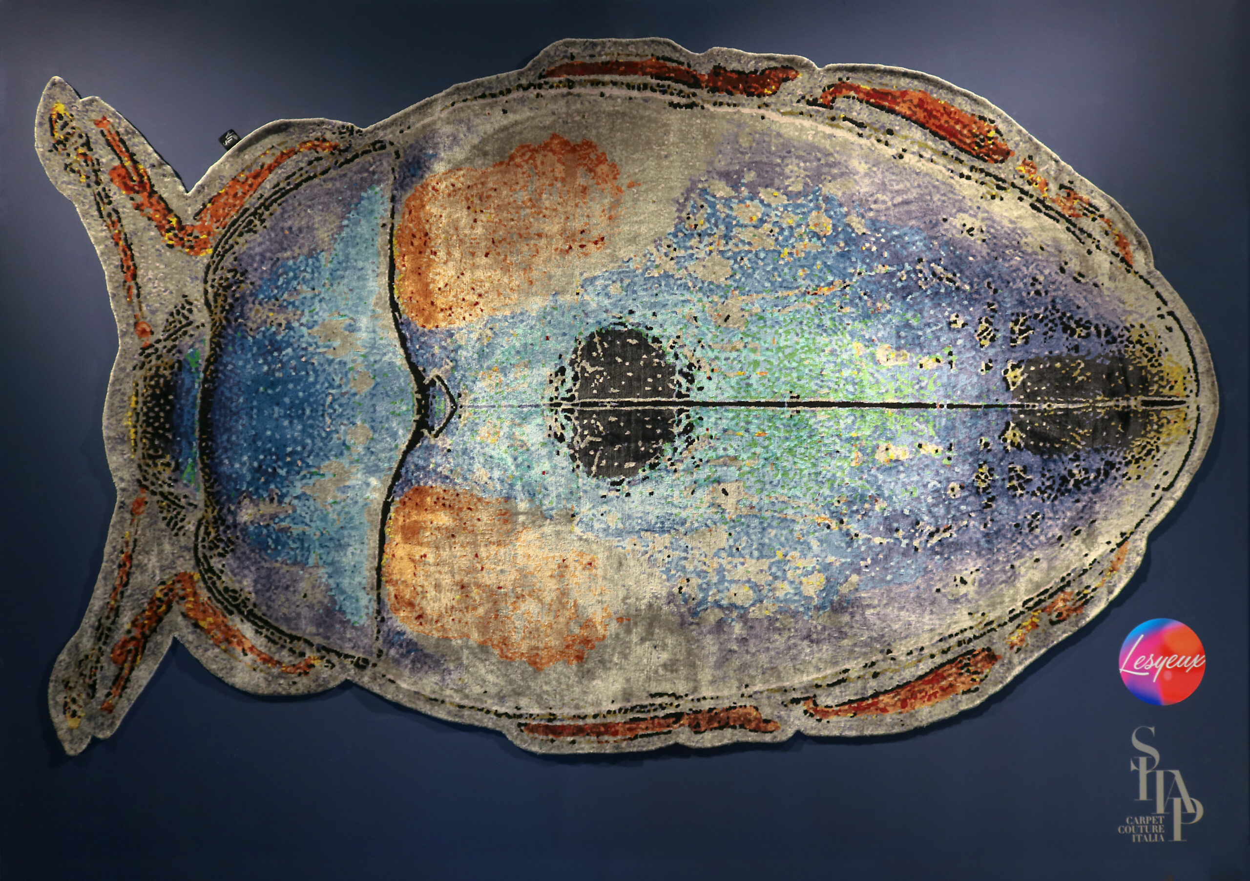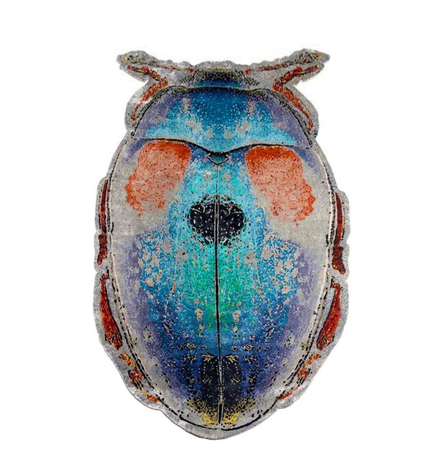 L’eternità del ciclo vitale di cambiamento e rinascita, questo era per gli antichi egizi lo scarabeo, simbolo che ha attraversato decine di civiltà arricchendo di volta in volta il suo significato fino alla resurrezione cristiana. Ma nell’epoca moderna l’insetto gigante è anche simbolo colto del disagio esistenziale e icona pop dei mali del tempo, a partire da quelli ambientali. Fondendo un’idea antica in una forma modernissima, il tappeto SCARABEO riproduce in dimensione amplificata ma con meticolosa precisione una fotografia ad alta definizione dell’insetto, resa in tessuto annodato a mano, con seta e lana di 75 colori naturali diversi, che cambiano ogni tre o quattro punti, per un effetto a pixel e multicolor. Un pezzo straordinario per ideazione e per fattura, rigorosamente manuale da parte di maestri tessitori, un richiamo alla natura nella sua complessa essenza che impreziosisce l’arredamento con un oggetto senza tempo.